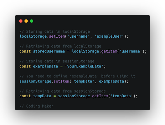 Session-Based Storage : Data stored in "sessionStorage" persists only for the duration of the page session. Once the session ends (usually when the browser is closed or the tab is closed), the data is cleared. This is great for temporary data storage.